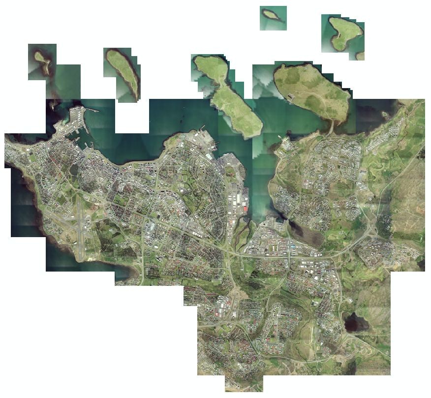 Description: Lágflugsmyndir af Reykjavík og eyjunum teknar af Hnit hf. 18. júlí 2004. Flughæð 1000m.